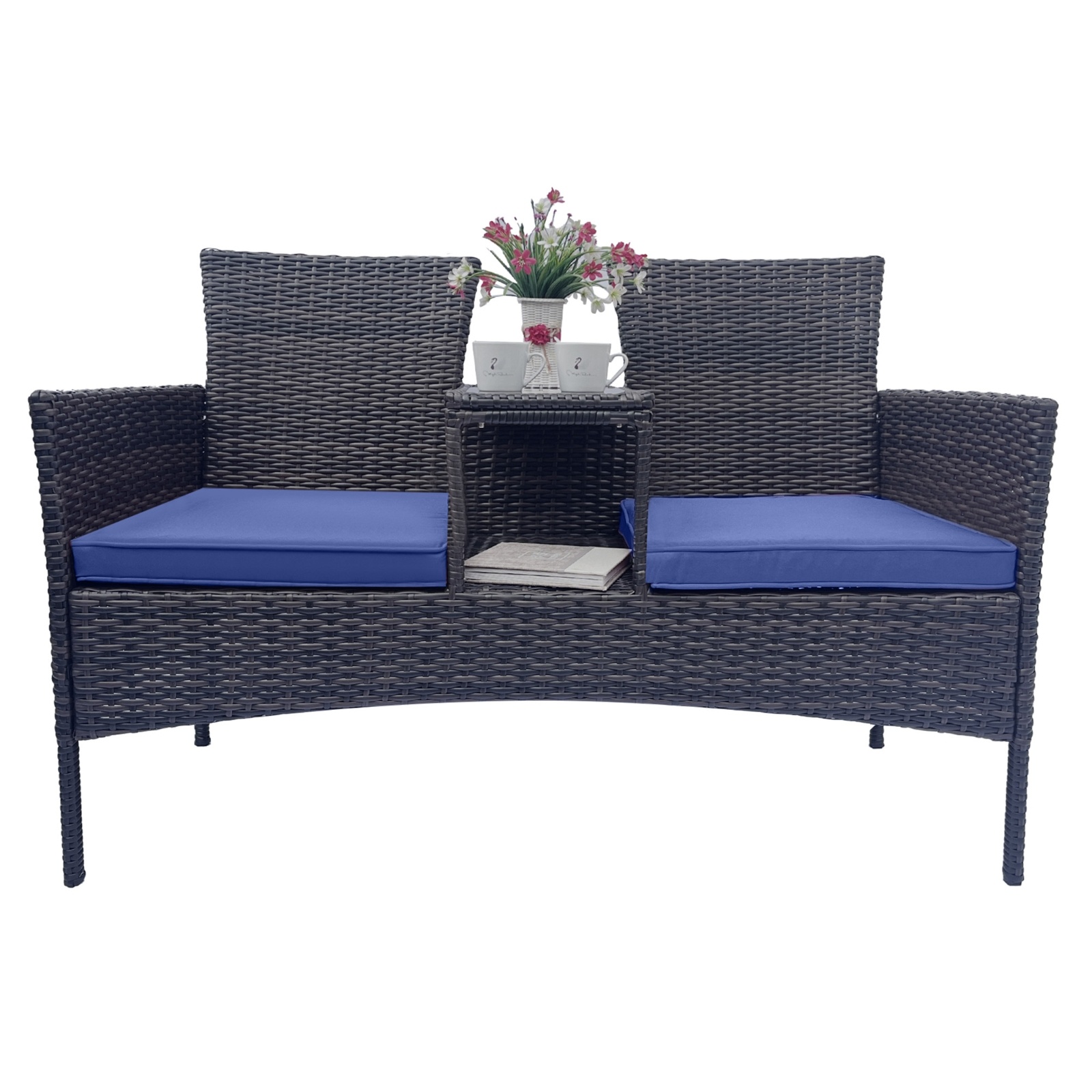 【Cozy and Soft Seat Cushions】Comes with two super comfort seat cushion, this patio conversation set is cozy and soft. In addition, this zipper cushions filled with high-density sponge and covered premium polyester fabric for optimal comfort and relaxation. For easy cleaning, the cover is removable and washable.